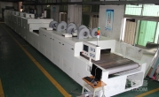 2、外形尺寸(約):總長24500mm*總高1740mm*總寬1890mm,地面到網(wǎng)帶的高度為950-1050mm,爐體內(nèi)進料高度為150mm;烘干部分總長14000mm,分7段獨立控溫(每段4個測溫熱電偶),每段2000mm。冷卻段長4000mm,UV區(qū)2000mm,前后緩沖區(qū)各長500mm,進料部分長2000mm,出料部分長1500mm, 爐體前后大梁上方裝有急停開關(guān),共4個。